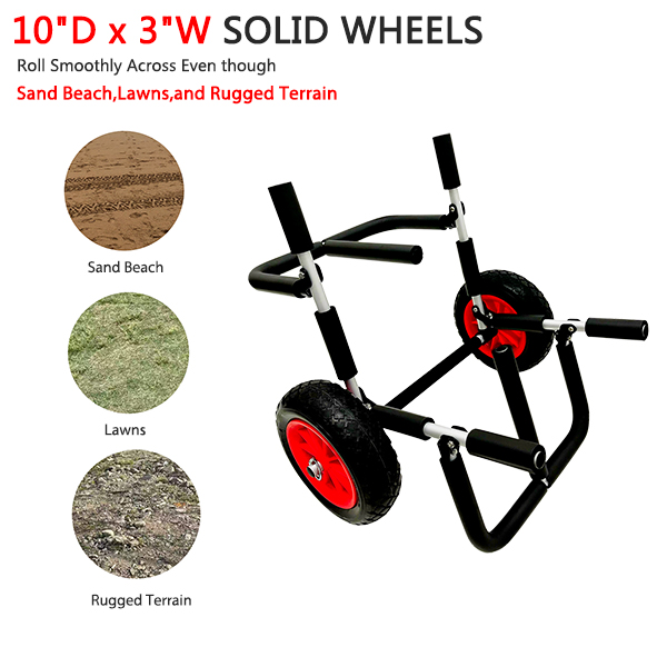 Двойная тележка для досок с веслами отличается универсальностью и различными вариантами колес в соответствии с вашими конкретными потребностями. Выбирайте пневматические колеса, полиуретановые колеса без сколов или баллонные колеса. Размер 10-дюймовых колес гарантирует устойчивость и плавность хода даже на неровной поверхности. Пневматические колеса превосходно работают на пересеченной местности, а колеса из полиуретана без сколов идеально подходят для гладких поверхностей. Для исключительной маневренности на мягком песке баллонные колеса обеспечивают дополнительную плавучесть.