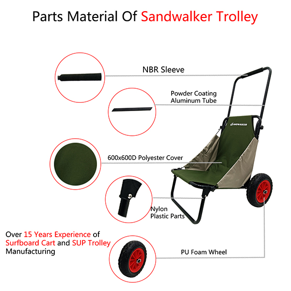 С этой тележкой можно легко переносить снаряжение для водных видов спорта на пляж. Просторный дизайн и прочная конструкция позволяют легко транспортировать ваше снаряжение.